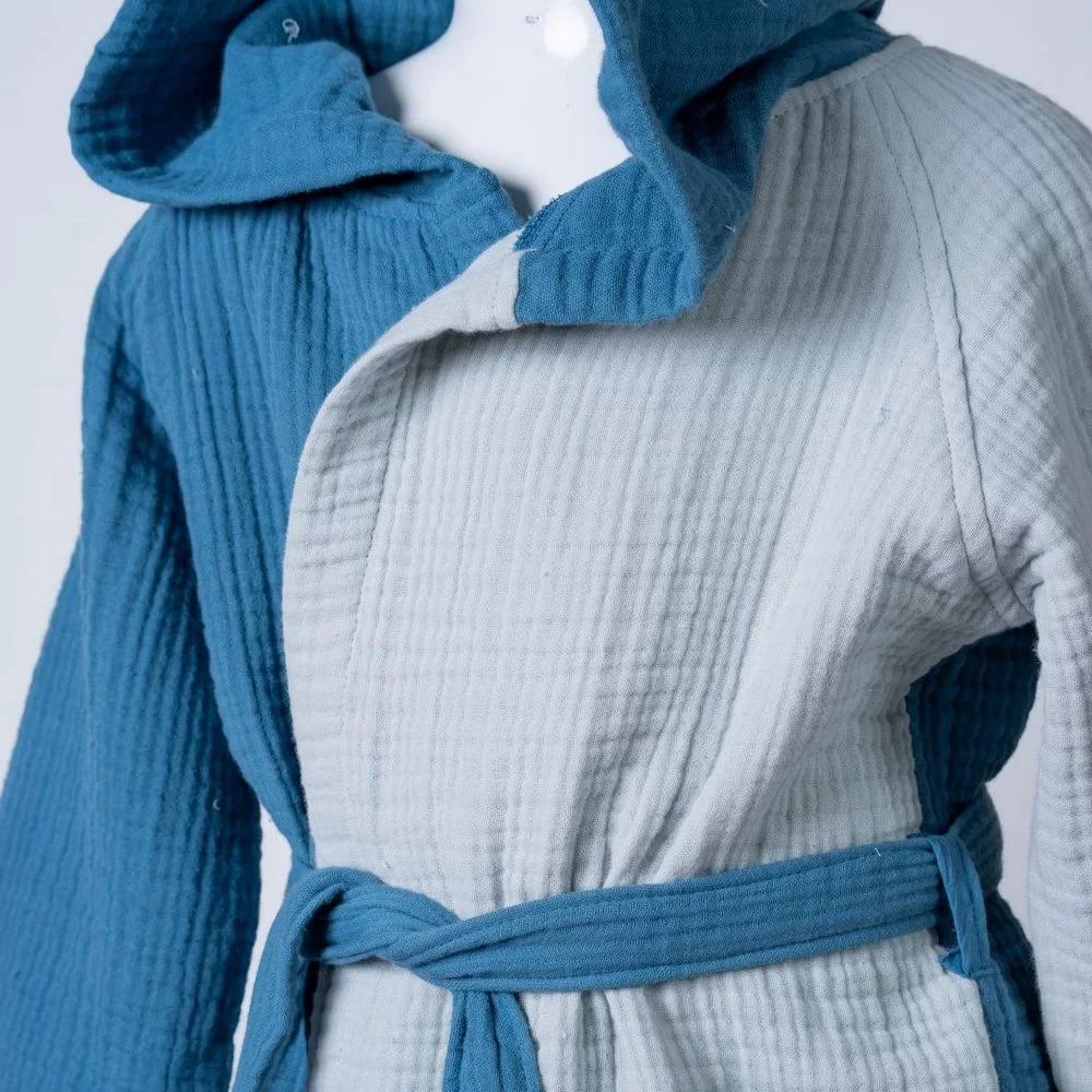 Full Cotton 4-Layer Muslin Bicolor Bathrobe