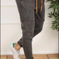 The men's pants constructed with jean fabric waist and trotters are rubber tires.