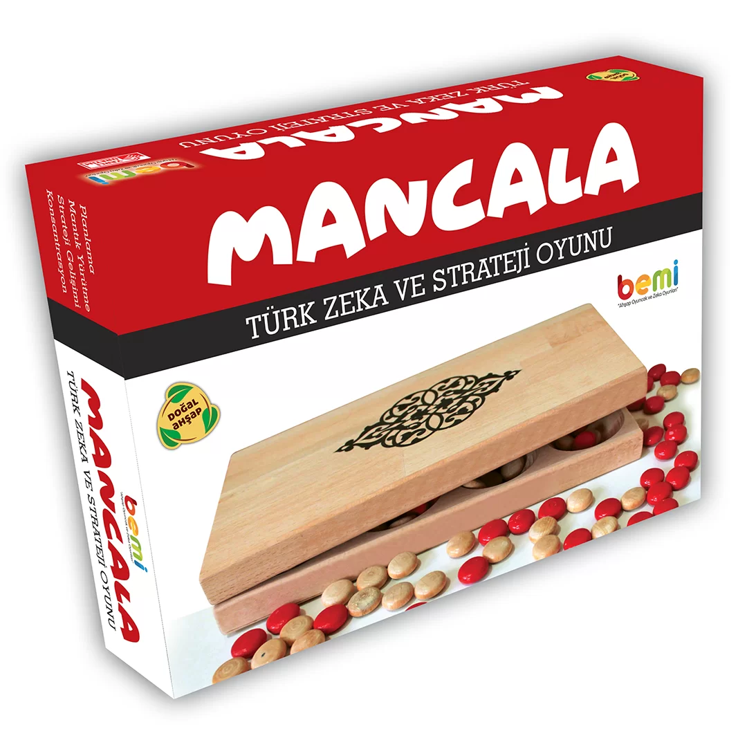 Bemi Natural Wooden Mancala Turkish Strategy Game